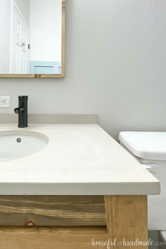 Concrete Vanity Top  I'll show you how to make it, hang a undermount sink, finish it and yo.   concrete is excellent for making a vanity top! Do you follow me on instagram and pinterest? Concrete is a fun and cheap way to get an industrial look.  beautifully made modern bathroom vanity tops.  stop by to see how i built my. Concrete Vanity Top.